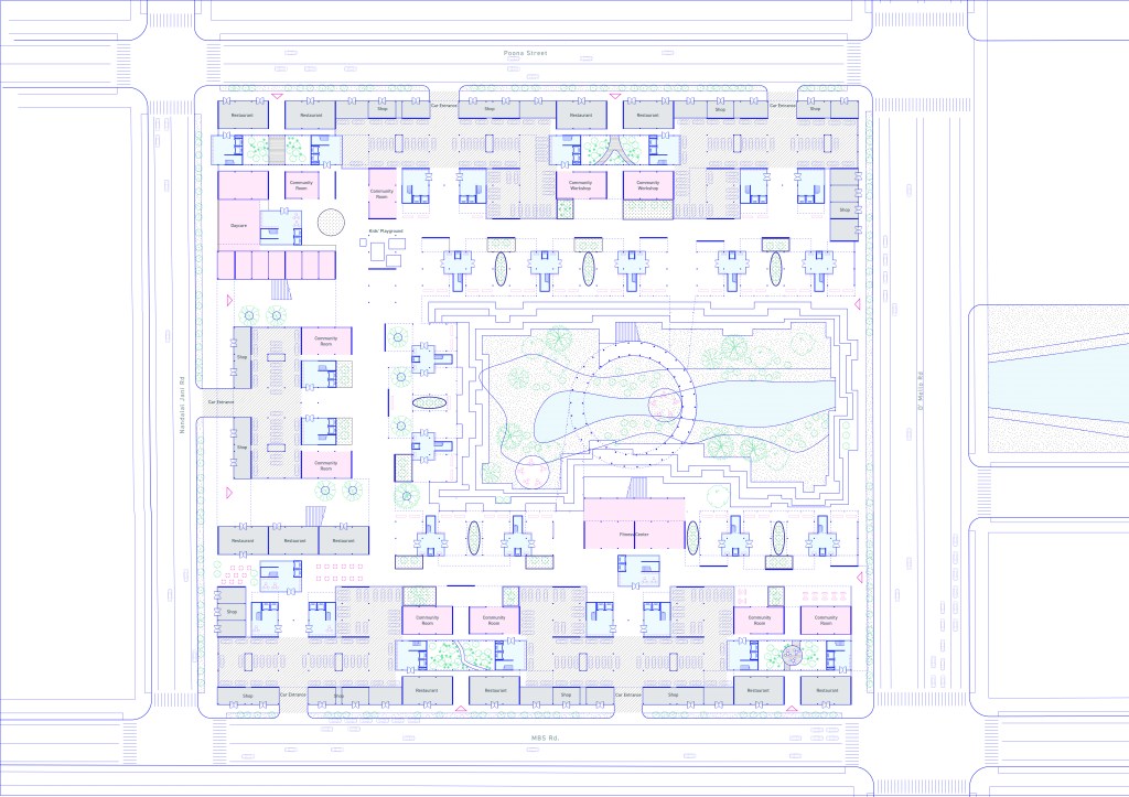 The project seeks to explore the balance between clarity and ambiguity within the context of Mumbai. This ambiguity is different from generic. In a city where a mix of population and activities happens by default, a designer needs to be strategic in guiding the development process instead of simply accepting the status quo. I envision the Elphinstone Estate will work as a model for other parts of the eastern waterfront and potentially the city for future development.