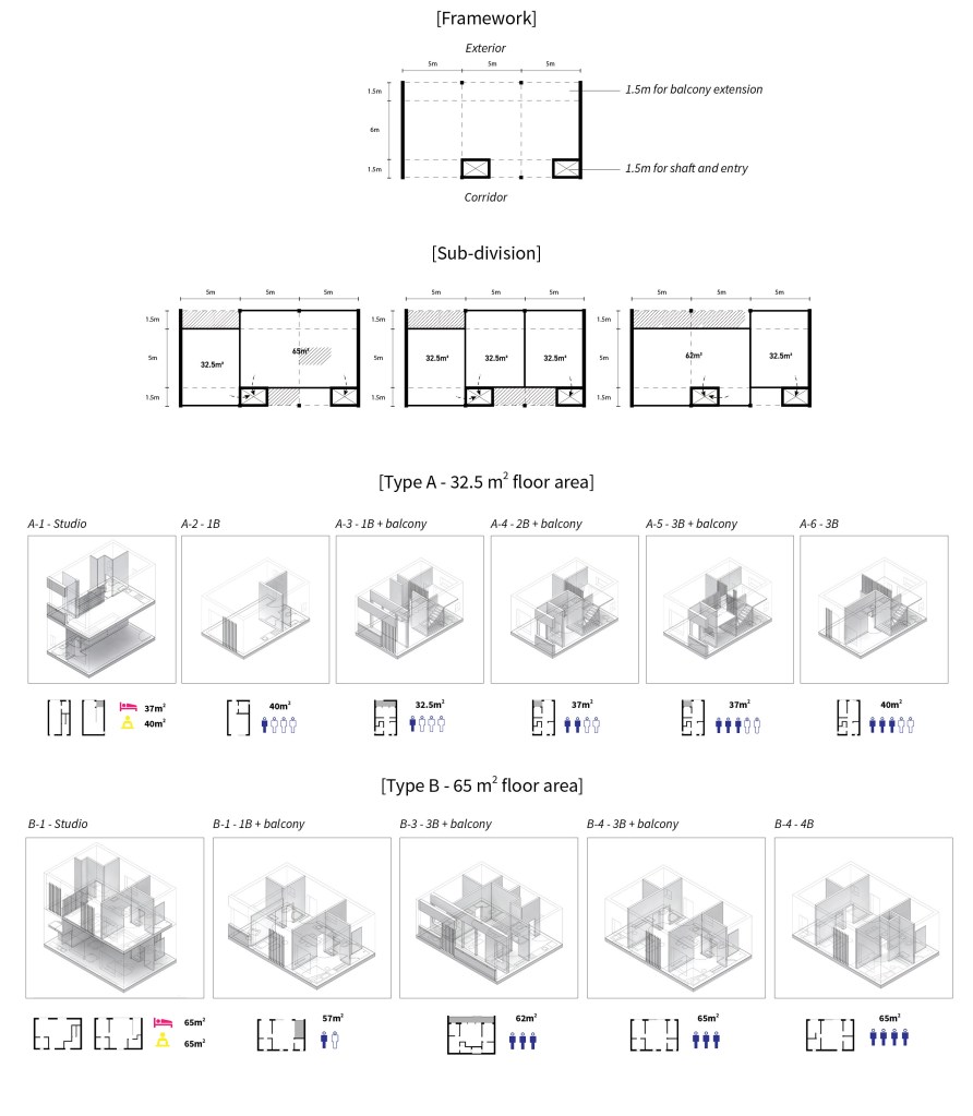 Faced with a shortage supply of open space and housing in such a densely populated city, this design seeks inspiration from creativity in the city – where there is some ambiguity within a well-supported framework.