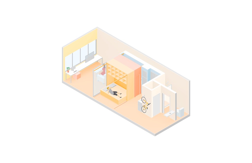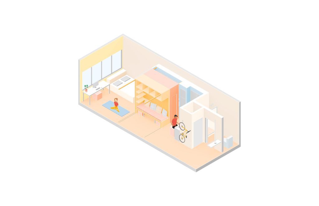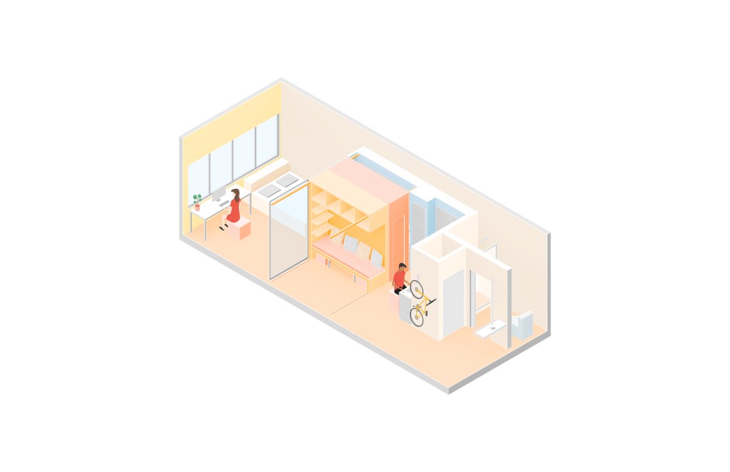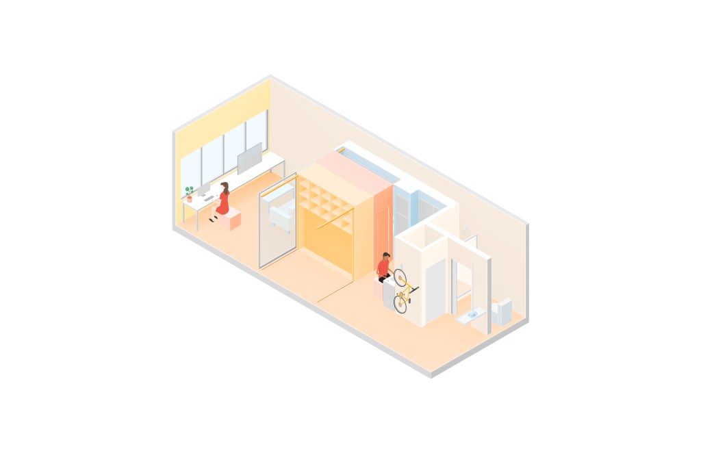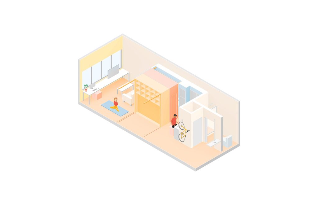 Based on the study of several studio units on the market, we proposed a unit that has similar square footage but can accommodate the new work-from home lifestyle.