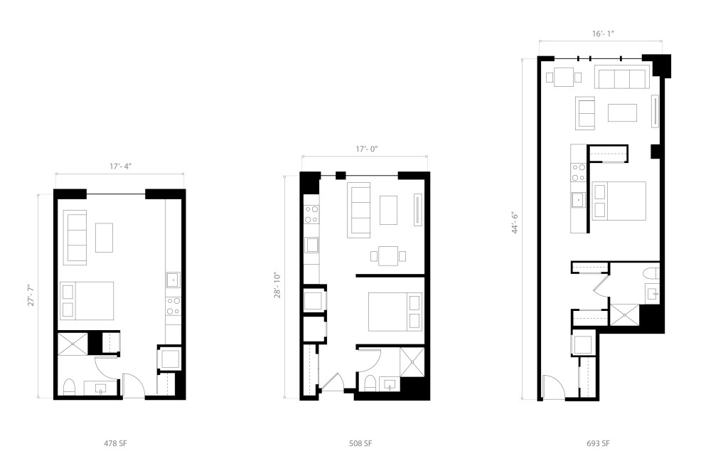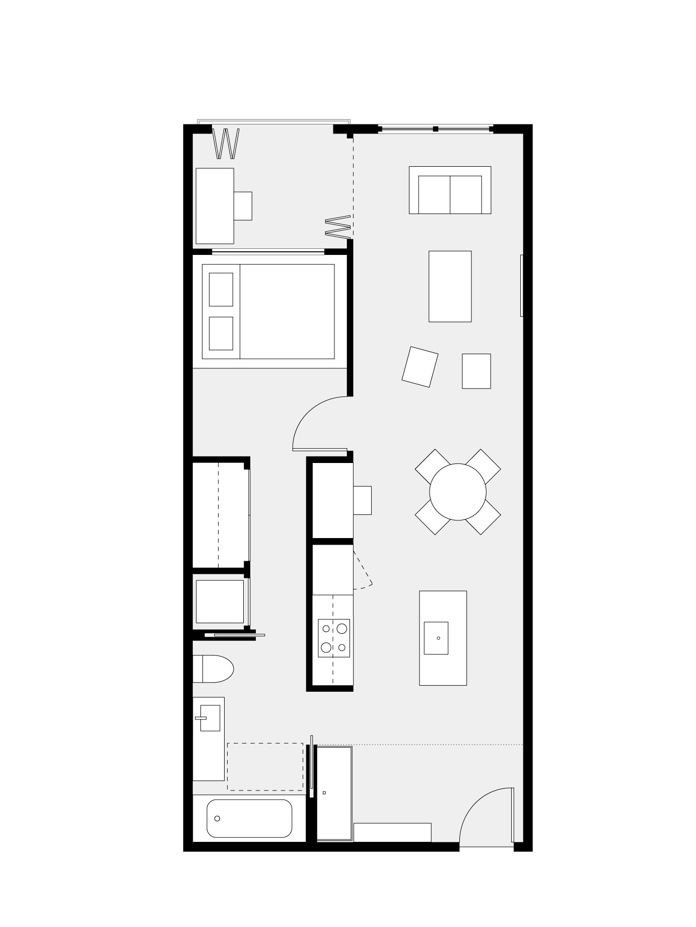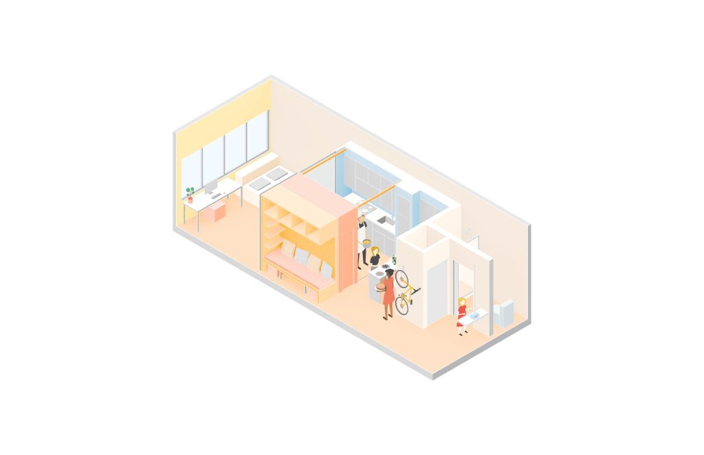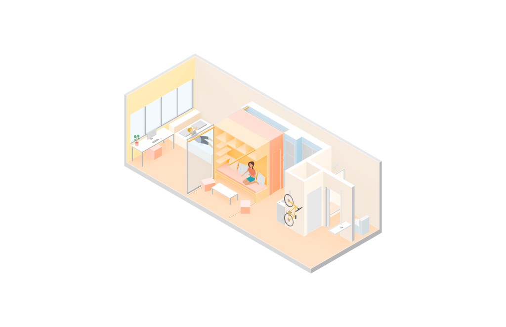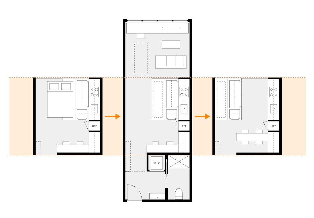 Based on the study of several studio units on the market, we proposed a unit that has similar square footage but can accommodate the new work-from home lifestyle.