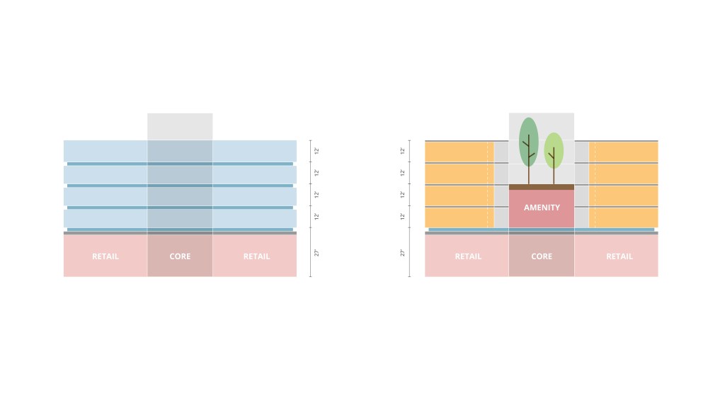 Common office has deeper floor plate and higher ceiling space compared to multi-family buildings.