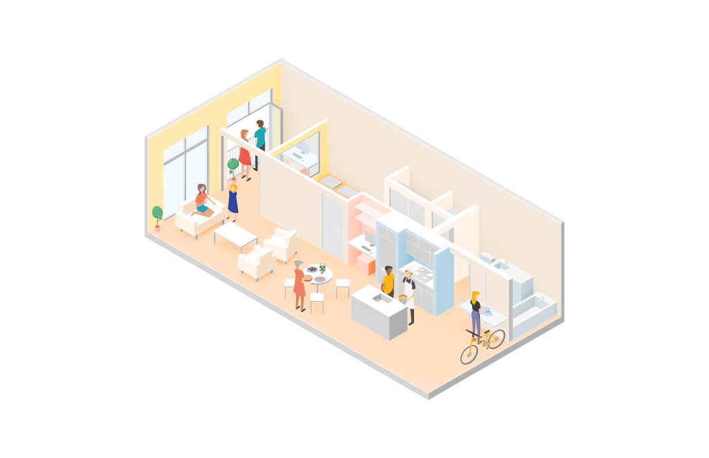 When pandemic hits the society, work-from-home becomes the new normal and is likely to stay as a popular option. However, current multi-family residential offerings in the market are not suited for the new lifestyle. As part of the Post-COVID research series, the Live-Work Unit attempts to accommodate the new requirements with a more flexible unit layout. The proposed unit has deeper floor plate that can also facilitate the office-resi adaptive reuse.