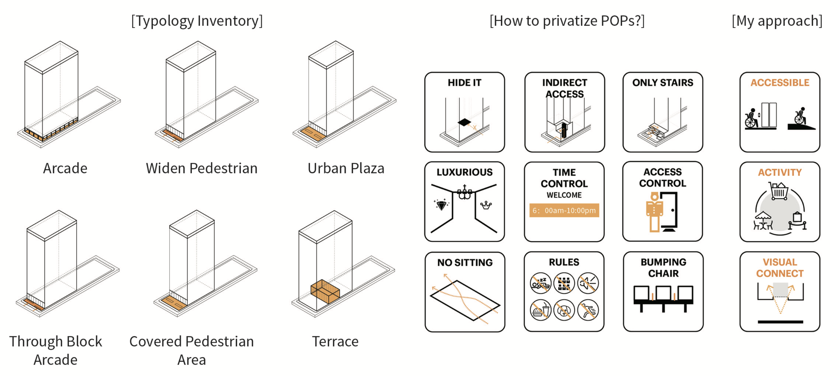 To make a genuinely welcoming POP, it is crucial to make it accessible, activated by programs, and have visual connections with the private realm above.